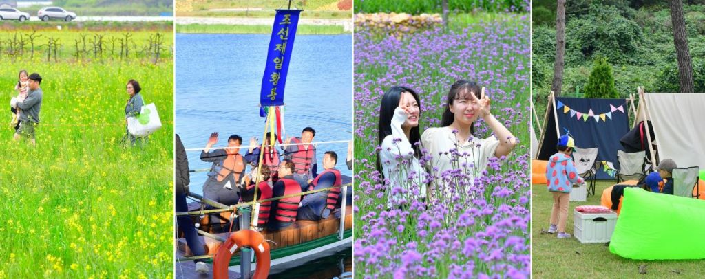 좌측부터 산동리 유채꽃축제, 황룡 뱃나드리축제, 동화 버베나축제, 삼서 잔디문화축제.