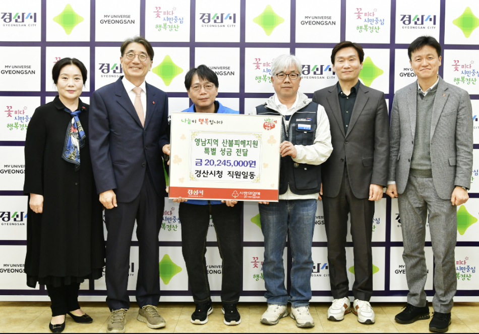 조현일 시장은 “갑작스러운 산불로 삶의 터전을 잃은 이재민들에게 깊은 위로의 말씀을 드린다”면서 “전 직원이 함께 마음을 모은 이번 성금이 피해 주민들에게 조금이나마 도움이 되기를 바라며 하루빨리 일상이 회복되길 기원한다”고 말했다.