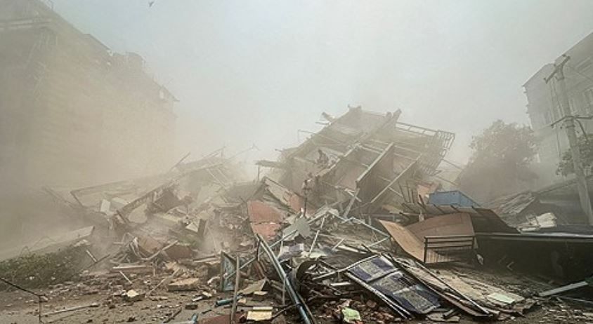 미얀마 강진으로 인해 무너진 태국 방콕의 건물. 로이터연합뉴스