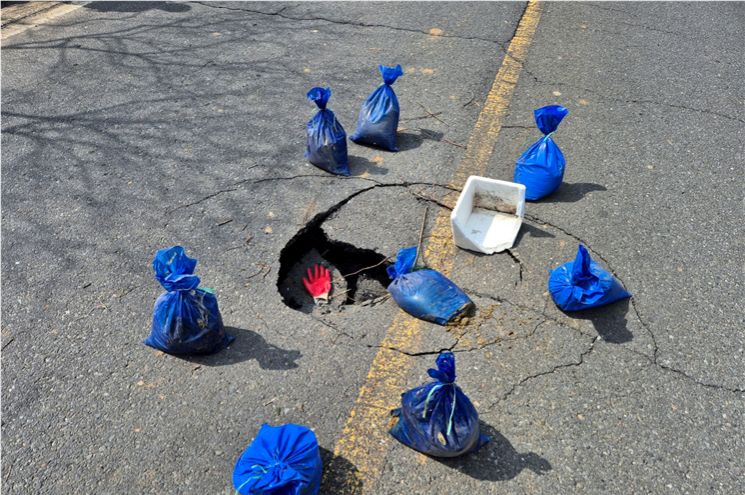 31일 오후 충남 서천군에서 30cm 깊이의 싱크홀이 발생했다.