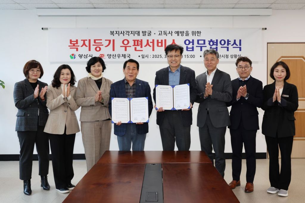 경남 양산시는 31일 양산우체국과 복지사각지대 발굴, 고독사 예방을 위한 ‘복지등기 우편사업’ 추진 업무협약을 체결했다.