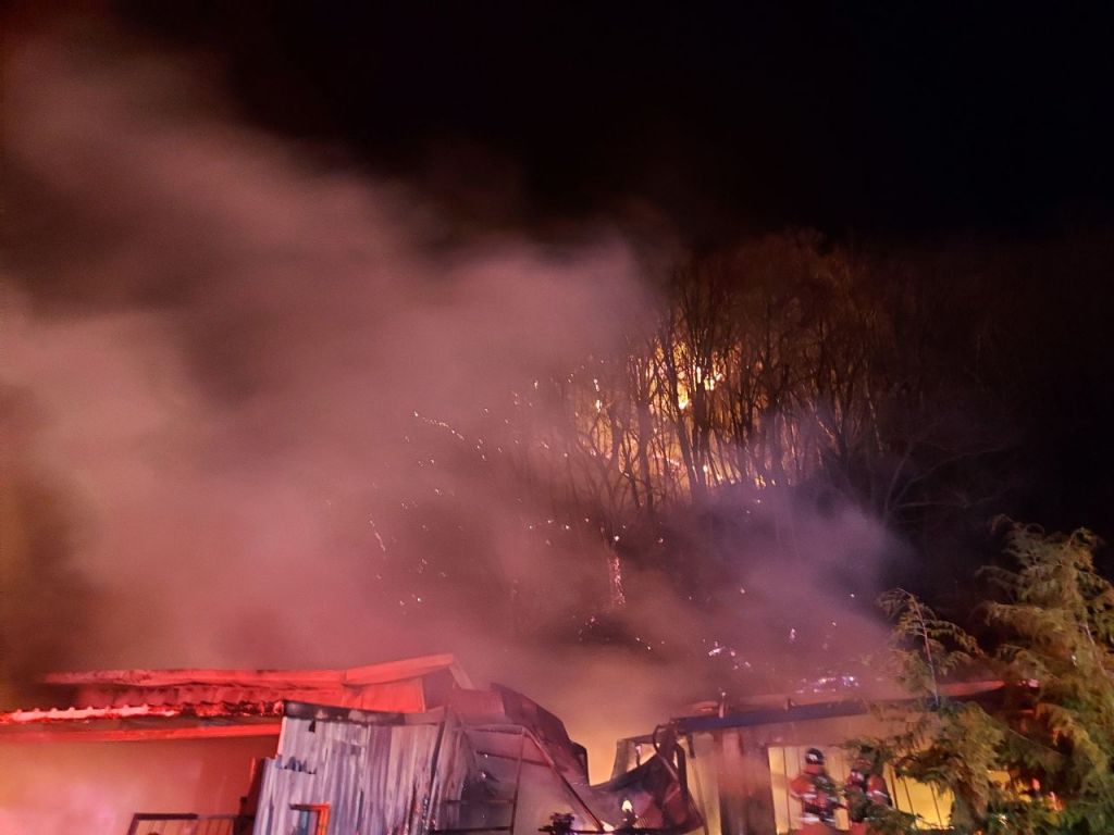 지난 26일 오후 9시 21분께 전북 무주군 부남면의 한 주택에서 난 불이 산으로 번져 연기가 치솟고 있다 연합뉴스