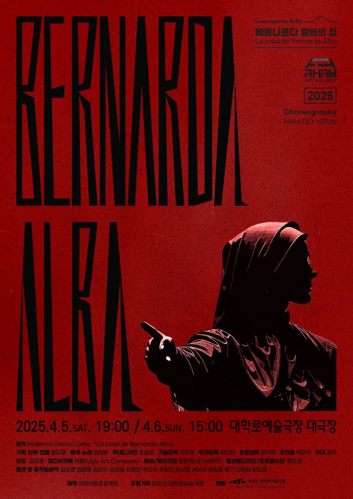공연예술단체 아함아트프로젝트가 오는 5~6일 서울 종로구 대학로예술극장 대극장에서 신작 발레 '베르나르다 알바'를 공연한다.