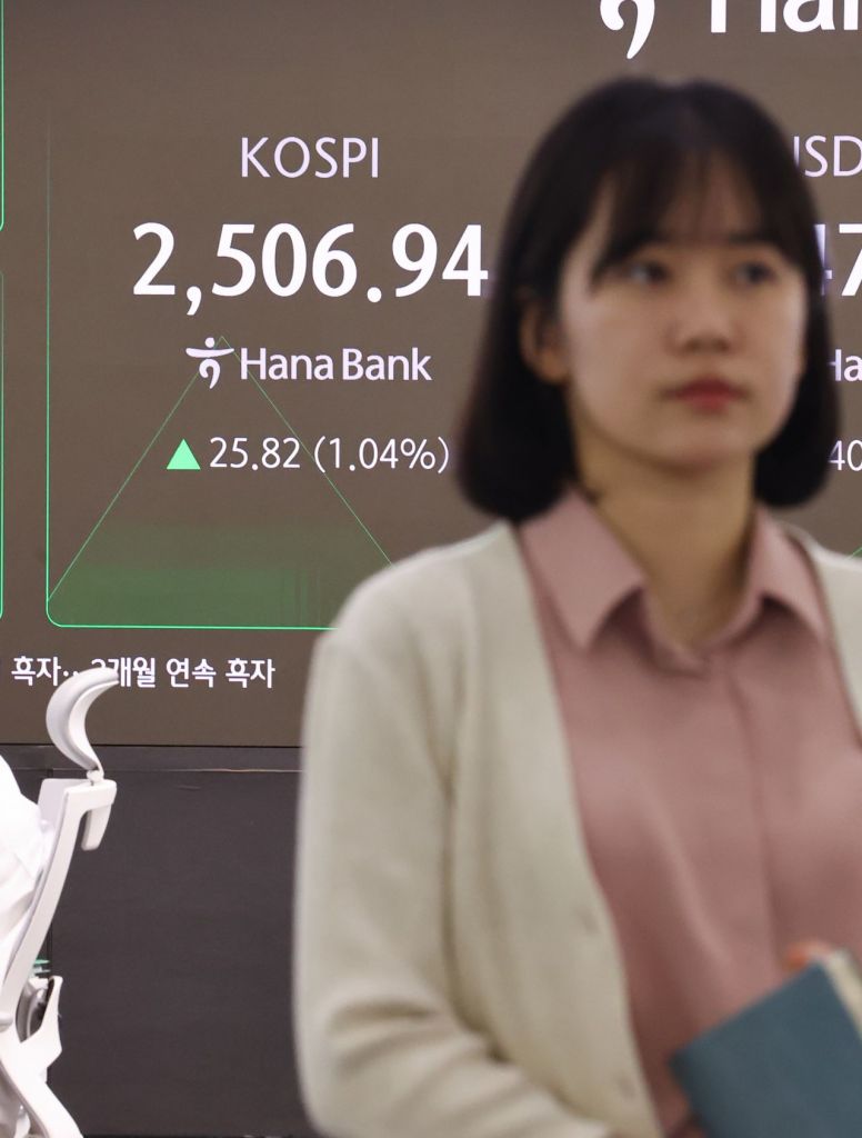 1일 오전 서울 중구 하나은행 본점 딜링룸 현황판에 코스피가 표시돼 있다. 이날 코스피는 전장보다 30.12p(1.21%) 오른 2511.24로 출발했다. 연합뉴스
