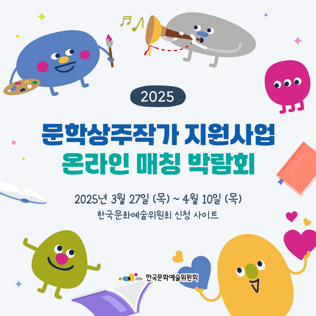 문화체육관광부와 한국문화예술위원회(아르코)는 ‘2025년 문학상주작가 지원사업 온라인 매칭박람회’를 오는 10일까지 진행한다고 1일 밝혔다.