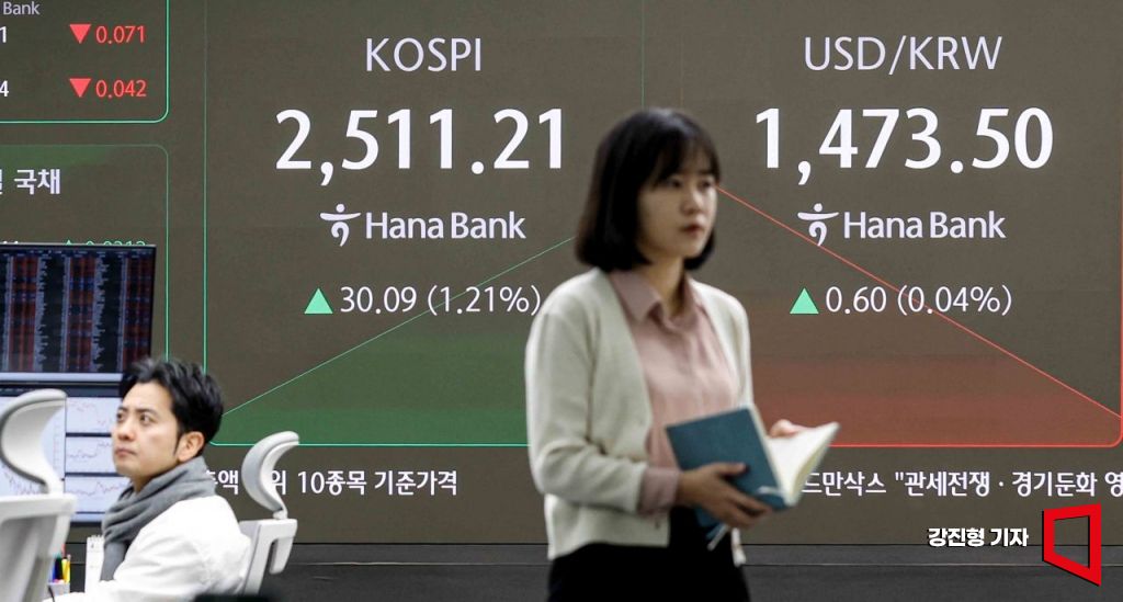 코스피 지수가 전 거래일 대비 1.21% 오른 2511.24원에 장을 시작한 1일 서울 중구 하나은행 딜링룸에서 딜러들이 업무를 보고 있다. 이날 원달러 환율은 전 거래일 보다 0.1원 오른 1473원으로 거래를 시작했다.