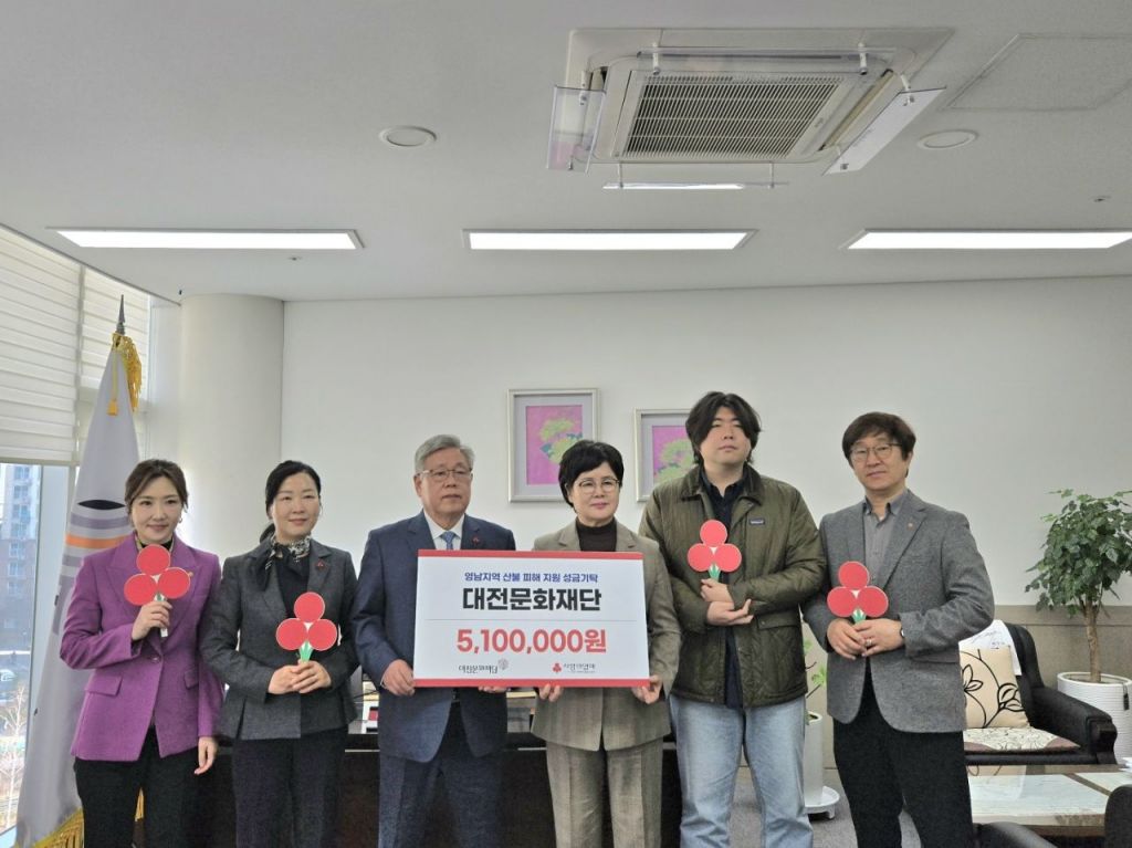 대전문화재단은 1일 경북 의성군과 경남 산청군 등지에서 발생한 대형 산불 피해복구를 위해 성금 510만원을 기부했다고 밝혔다.