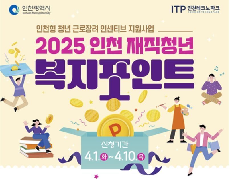 인천시가 중소기업에 근무하는 청년들의 복리후생 개선을 위해 복지포인트 120만원을 지원한다.