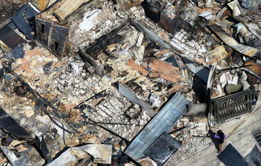 지난달 31일 경북 청송군 진보면 기곡리 한 마을이 산불에 초토화가 된 가운데 마을 주민이 주택 폐허를 살펴보고 있다. 연합뉴스