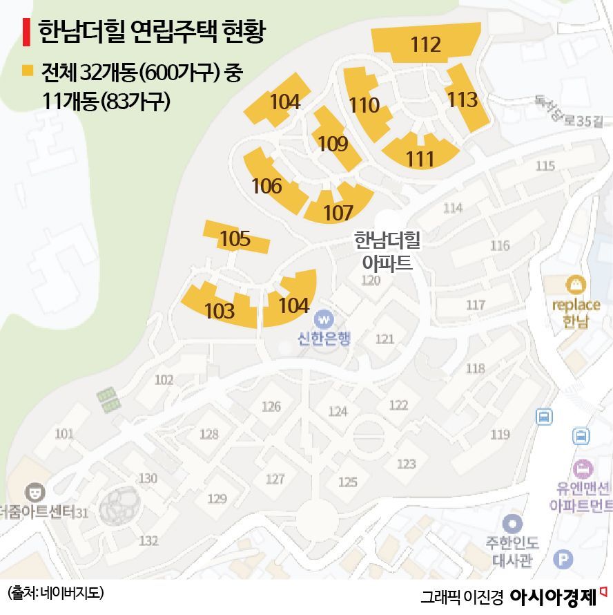 한남더힐은 아파트와 연립주택이 섞여 있어 동마다 토지거래허가구역 적용 여부가 다르다. 한남더힐의 건축물 대장을 보면 32개동(600가구) 중 11개동(83가구)은 연립주택이다. 주택법에서 아파트는 5층 이상, 연립주택은 주택으로 쓰는 1개동 바닥면적 합계가 660㎡을 초과하고 층수가 4개층 이하인 경우를 지칭한다. 같은 단지라도 아파트인 동은 관할 구청장의 허가를 받아야하며 2년 실거주 목적일 때만 매입이 가능하지만 연립주택은 갭투자로도 매입이 가능하다.