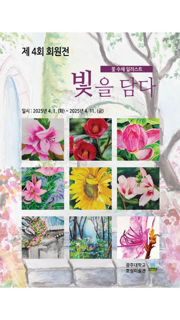 광주대학교(총장 김동진)는 평생교육원 수채 일러스트반이 '빛을 담다'를 주제로 꽃 수채 일러스트 제4회 회원전을 갖는다고 1일 밝혔다.
