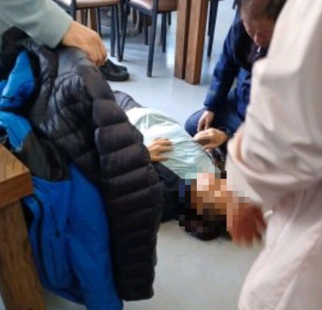 지난달 30일 오후 1시50분쯤 경기 남양주시 화도읍 묵현리 한 식당에서 한 남성이 식사 중 갑자기 의식을 잃으면서 옆좌석 의자 쪽으로 쓰러진 모습. 경기북부소방재난본부 제공