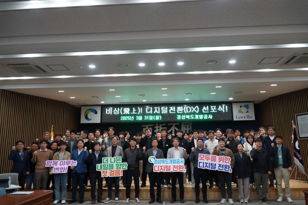 경북개발공사(사장 이재혁)가 지난달 31일, 디지털 기반 경영 실현을 위한 ‘디지털 전환 선포식’을 개최했다. 공사는 ‘생성형 AI, 클라우드 전환, 업무 자동화’ 등 신기술을 적용해 업무혁신을 이뤄냄과 더불어, 디지털 기술을 활용한 서비스 개선 및 고객만족을 실현해나갈 것임을 밝혔다.