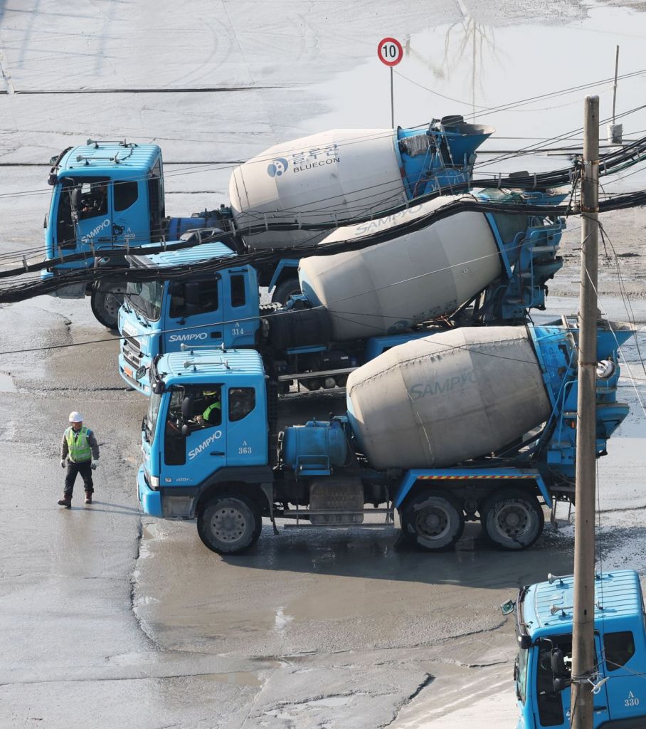 서울 시내의 한 레미콘 공장에서 레미콘 차량이 분주하게 움직이고 있다. 연합뉴스 제공