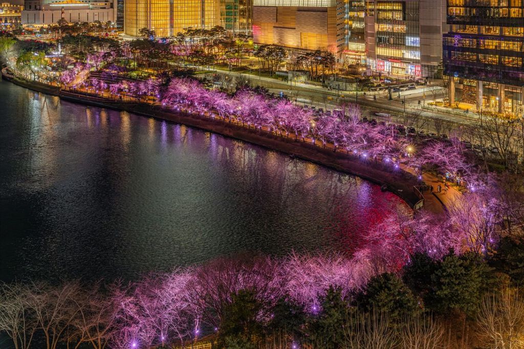 타워·몰 단지부터 석촌호수로 향하는 길에는 벚꽃잎을 모티브로 디자인한 분홍색 조명 300여개를 이어 달아 밤 산책로를 조성했다. 또 석촌호수 동호 데크부터 석촌호수 미술관 '더 갤러리 호수'까지 이어지는 구간에도 수목 투사 등을 설치해 야간에도 아름다운 벚꽃을 즐길 수 있도록 했다.