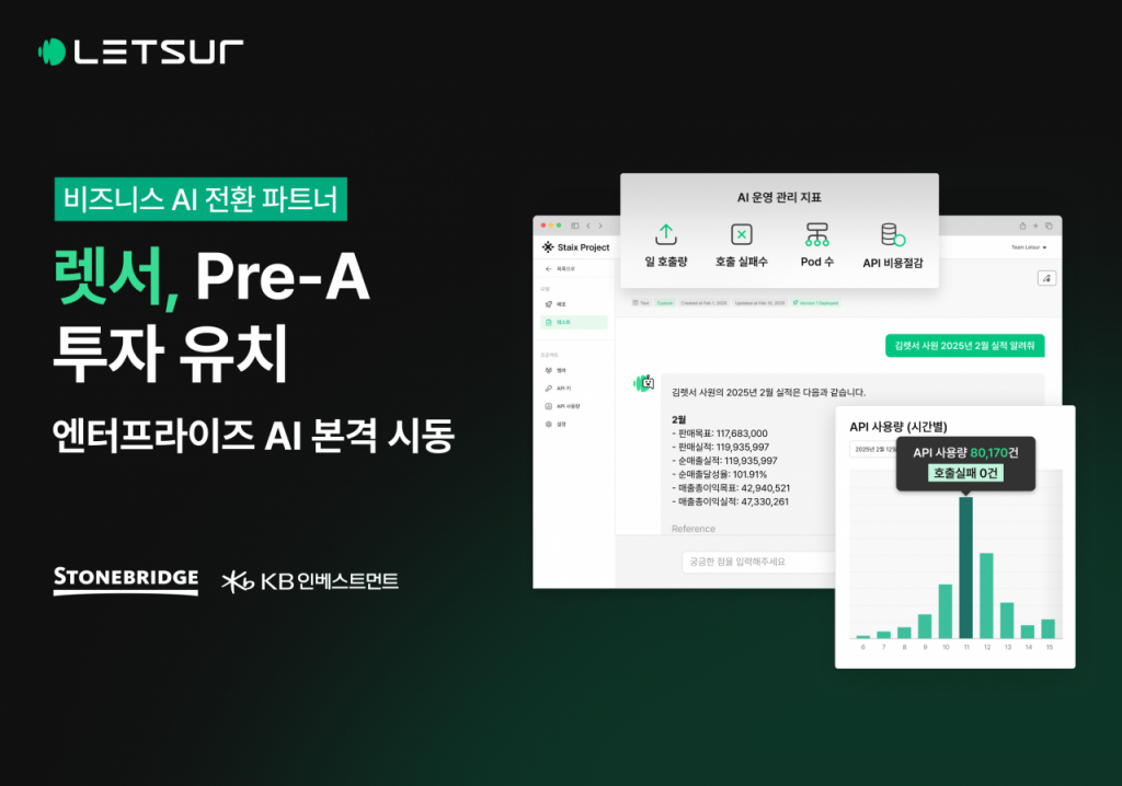 비즈니스 인공지능(AI) 전환 파트너 렛서(Letsur)가 AI 운영관리 역량을 강화하고, 엔터프라이즈(기업용) AI 시장 공략을 가속하기 위해 Pre-A 투자를 유치했다.