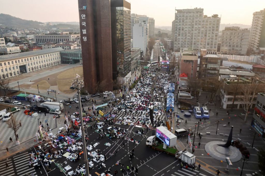 2일 서울 안국역 인근에서 윤석열 대통령 파면을 촉구하는 24시간 철야 집회가 열리고 있다. 연합뉴스