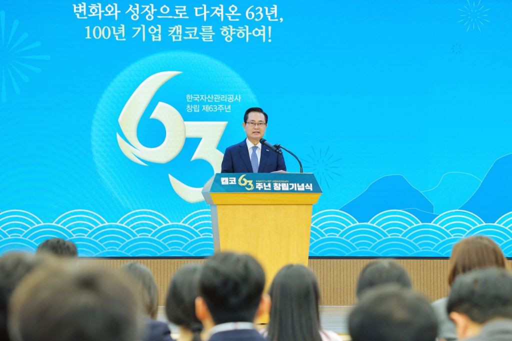 권남주 캠코 사장이 2일 63주년 창립기념식에서 기념사를 하고 있다. 캠코 제공.