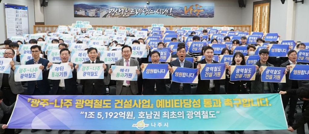 전남 나주시가 광주-나주 광역철도사업 예비타당성 조사 통과를 바라는 지역민들의 염원을 하나로 모았다.