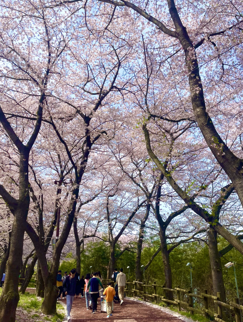 2일 광주 북구 일곡동에서 시민들이 한 벚꽃길을 걸으며 산책하고 있다. 송보현 기자