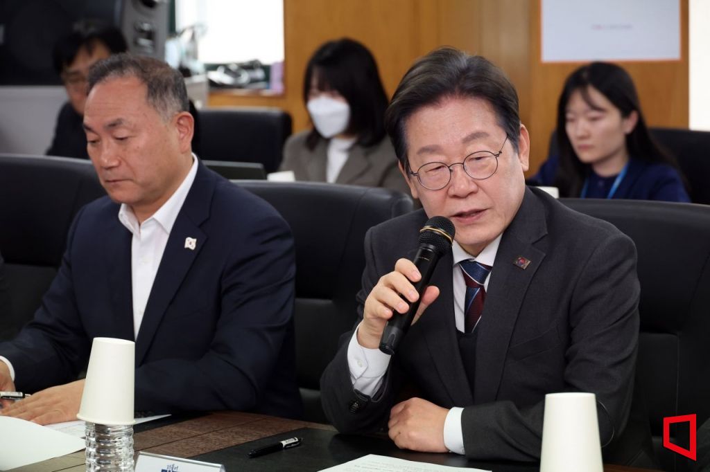 더불어민주당 이재명 대표가 2일 서울 영등포구 소상공인연합회 대회의실에서 열린 더불어민주당-소상공인연합회 민생경제 현장 간담회에서 발언하고 있다. 2025.4.2 국회사진기자단