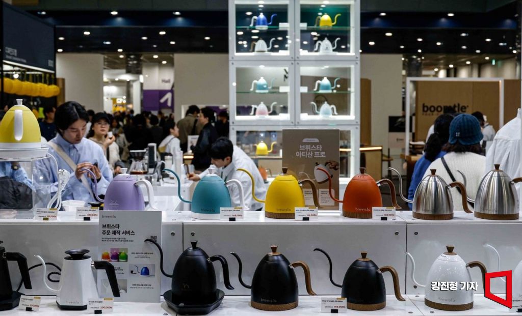 2일 서울 강남구 코엑스에서 열린 '2025 서울커피엑스포'에 전기드립포트가 진열돼 있다.