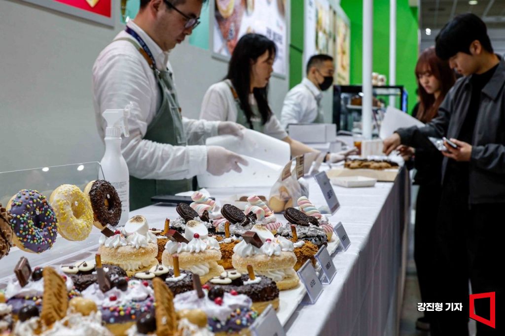 2일 서울 강남구 코엑스에서 열린 '2025 서울커피엑스포'에 참가한 관람객들이 다양한 디저트를 시식하고 있다.