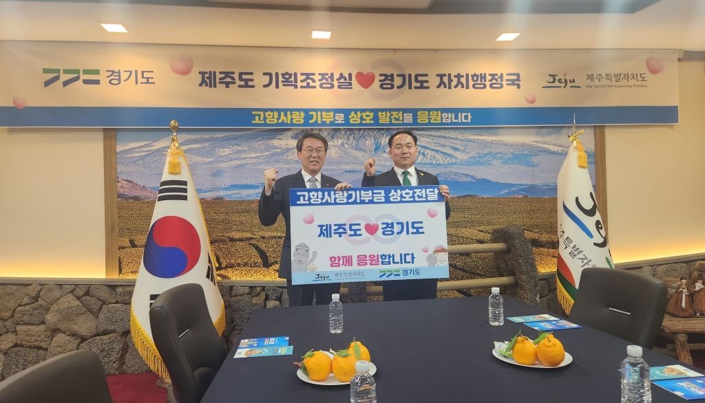 경기도가 2일 제주특별자치도와 ‘고향사랑기부제’를 통한 지역 상생협력의 실천적 모델을 만들기 위해 교차 기부를 진행했다.