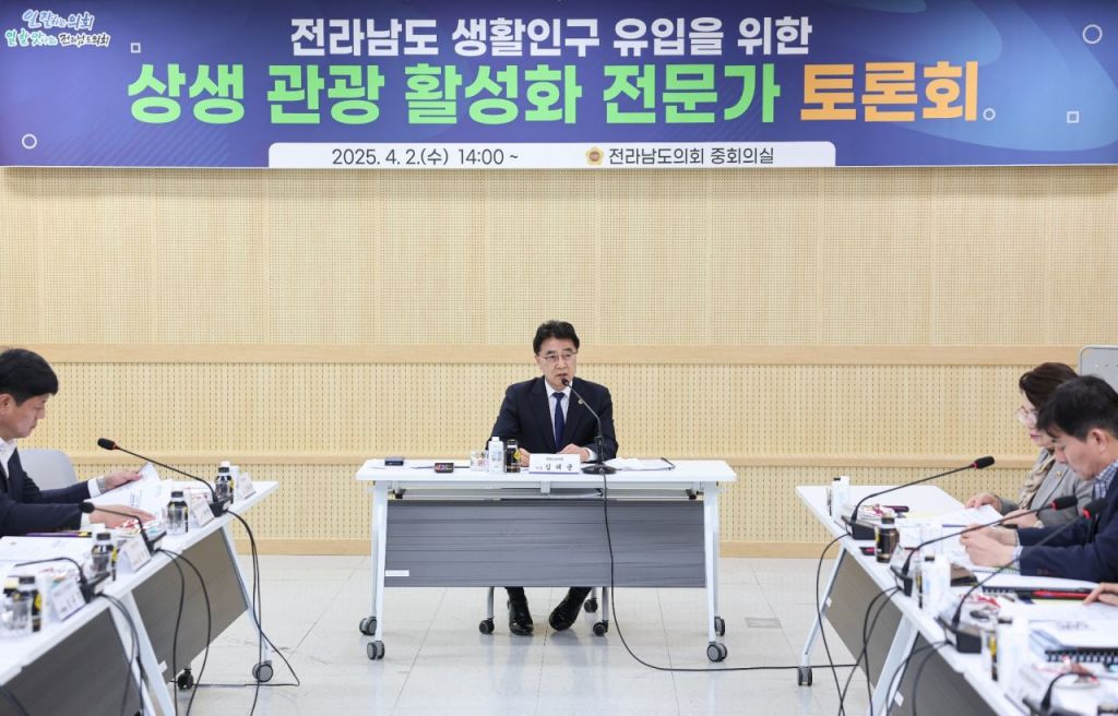 전남도의회 김태균 의장은 2일 도의회 중회의실에서 ‘전라남도의 생활인구 유입을 촉진하기 위한 상생 관광 활성화’ 토론회를 개최했다.