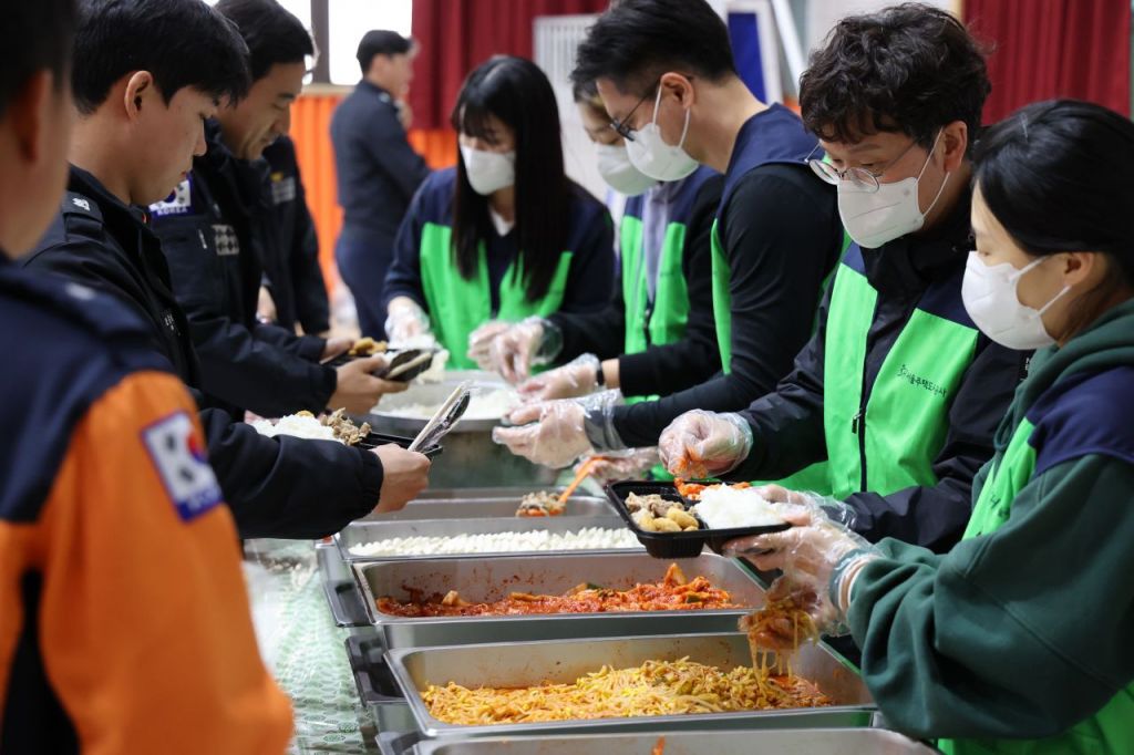경남 산청군을 찾은 서울주택도시공사(SH공사) 임직원들이 산불 진화에 투입된 소방대원들에게 식사를 배식을 하고 있다. SH공사