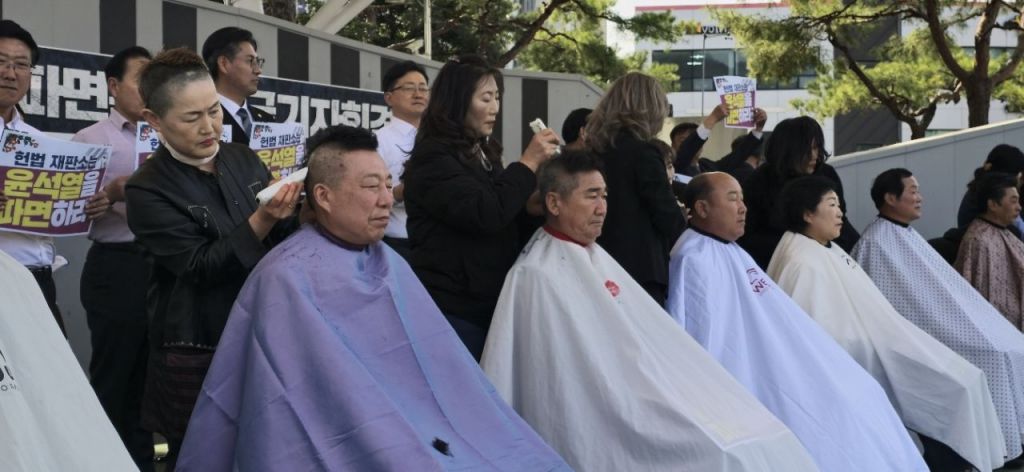 더불어민주당 전남 해남·완도·진도 지역위원회는 2일 해남 군민광장 야외공연장에서 윤석열 파면을 촉구하며 삭발식을 강행했다.