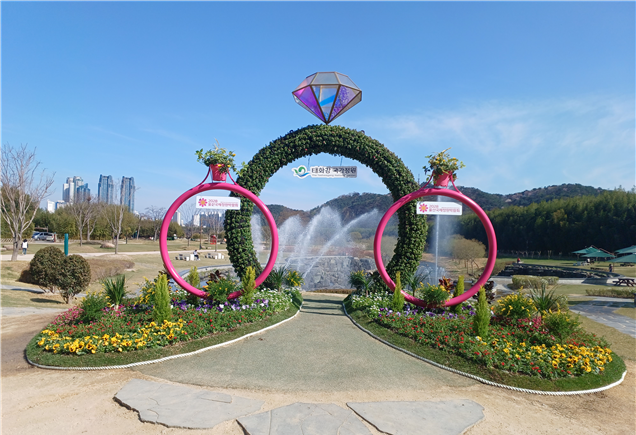 대형 꽃반지 조형물로 봄의 향기를 듬뿍 느낄 수 있는 임파첸스, 데이지, 팬지 등으로 조성됐으며 2028 울산국제정원박람회 홍보 문안도 함께 장식됐다.