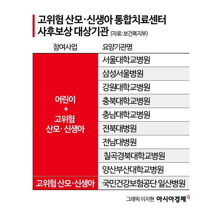 복지부는 "고위험 산모·신생아 통합치료센터 사후보상으로 산과 및 신생아 전문의, 간호사 등 필수 인력과 전문병동, 장비 등 필요한 의료자원이 확충돼 고위험 산모·신생아가 필요한 때 충분한 진료를 받을 수 있게 될 것으로 기대된다"고 전했다.