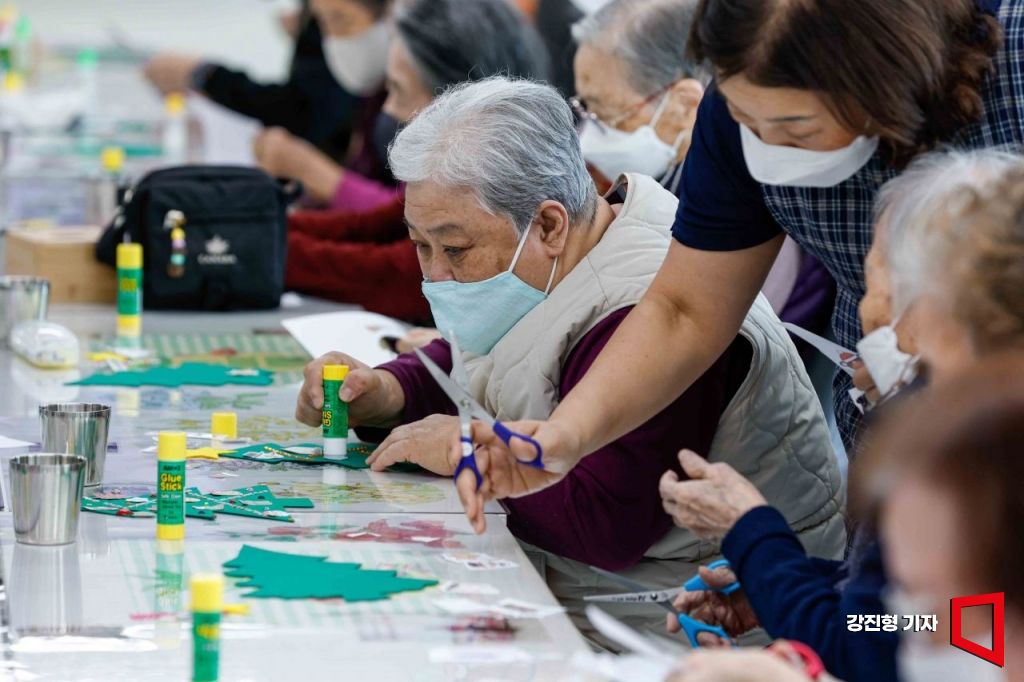 6일 서울 성북구 길음데이케어센터에서 어르신들이 만들기 활동을 하고 있다. 일명 '노치원'(노인+유치원)으로 불리는 데이케어센터는 요양시설에 갈 정도는 아니지만, 초기치매 등 노인성질병으로 혼자서 일상생활이 어려운 노령층(장기요양1~5등급)을 돌봐주는 시설이다. 강진형 기자