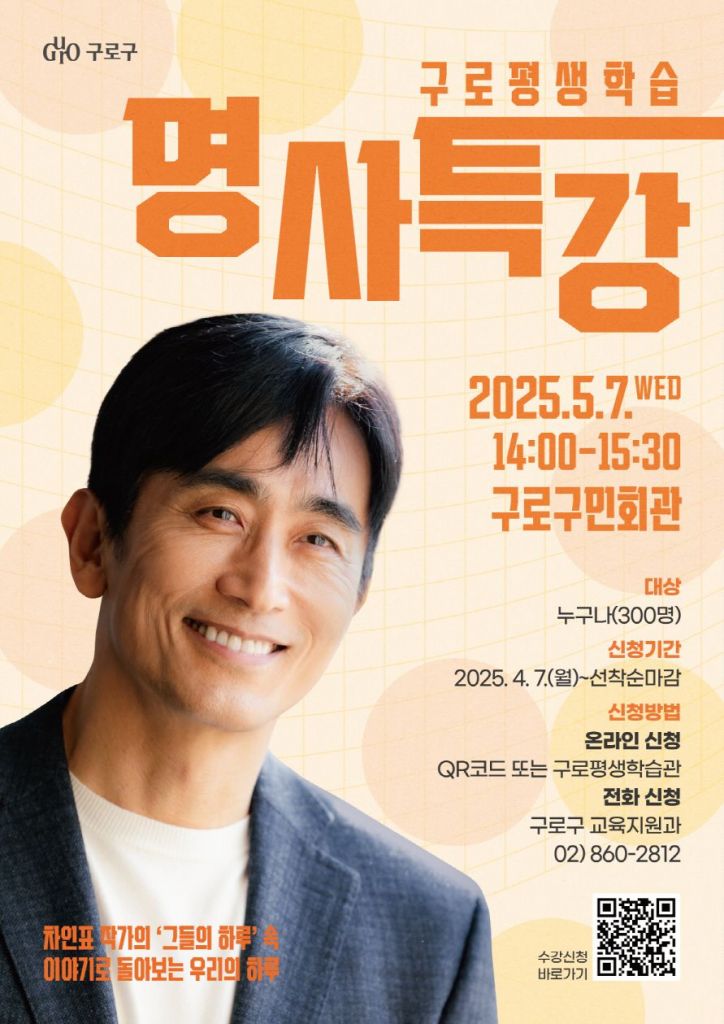 구로구(구청장 장인홍)가 오는 5월 7일 구로구민회관에서 ‘구로평생학습 명사 특강’을 개최한다고 밝혔다.