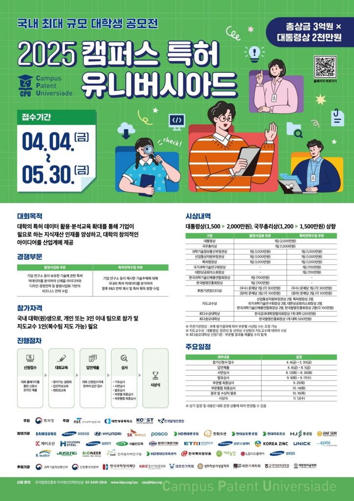 특허청은 이달 4일~내달 30일 ‘2025 캠퍼스 특허 유니버시아드(Campus Patent Universiade·이하 CPU)’ 참가자를 모집한다고 4일 밝혔다.