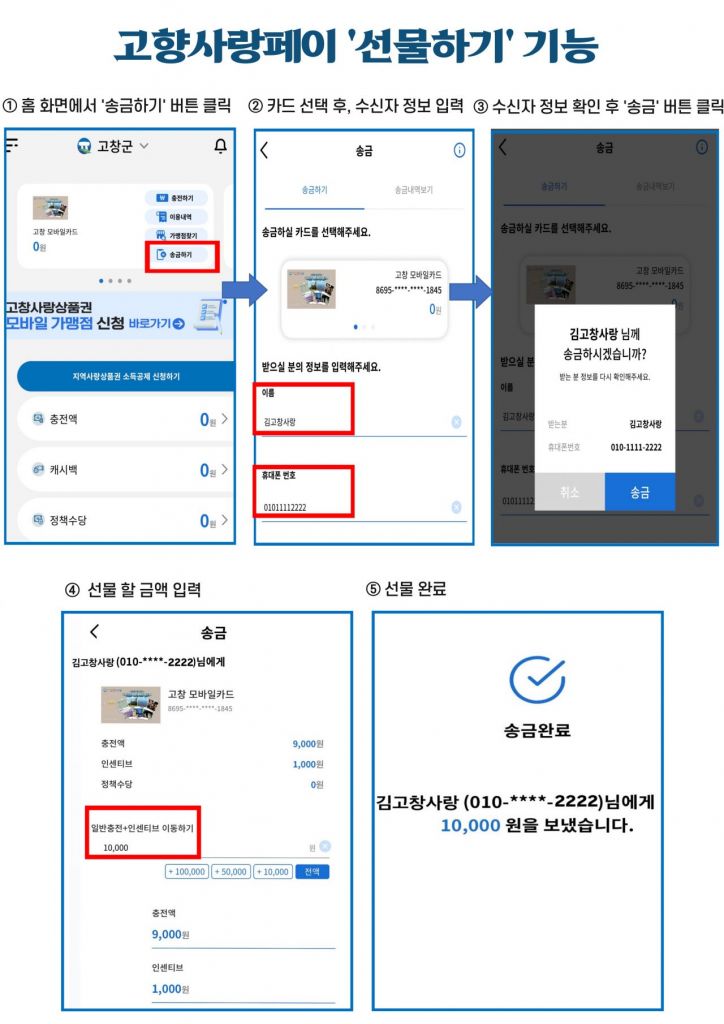 고창사랑상품권 선물하기 서비스 사용방법. 고창군 제공