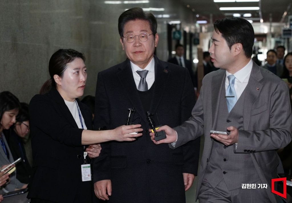 [포토] 윤 대통령 탄핵심판 선고 앞두고 최고위 향하는 이재명