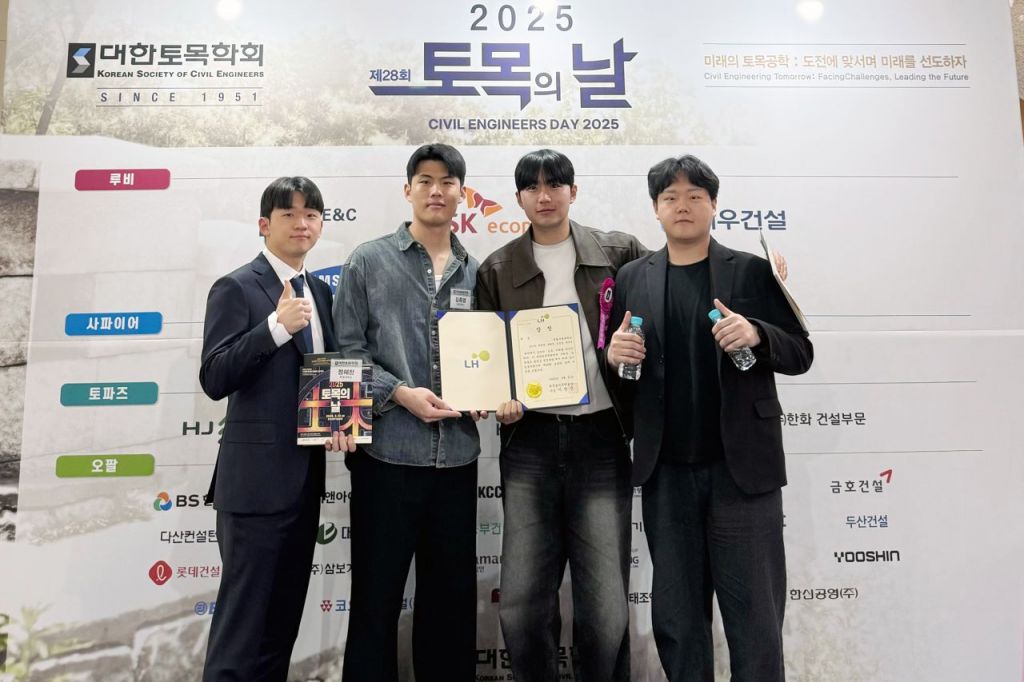국립부경대학교(총장 배상훈) 토목공학전공 학생팀이 2025년 제28회 토목의 날 토목홍보 동영상 경진대회에서 대상을 받았다.