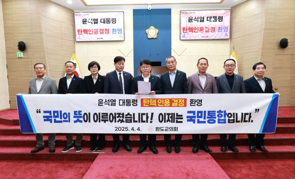 헌법재판소가 4일 윤석열 대통령에 대한 탄핵 심판에서 파면 결정을 내린 가운데, 전남 완도군의회는 “헌법 질서를 수호한 역사적 판결”이라며 적극적인 환영 입장을 밝혔다.