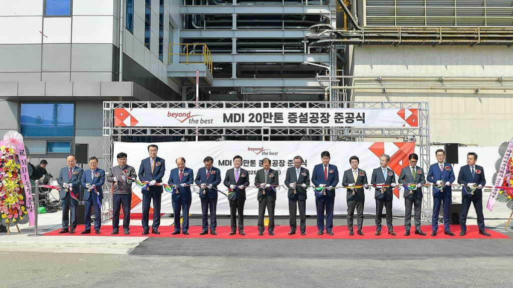 이번 공장 증설로 MDI(메틸렌 디페닐 디오소시아네이트) 생산 능력은 연간 61만 톤으로 증가했으며, 이는 단일 공장 기준 국내 최대이자 세계에서 2번째 규모다.