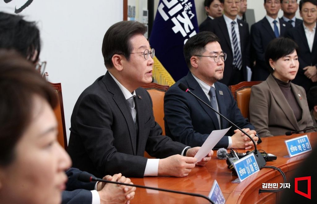 이재명 더불어민주당 대표가 4일 국회에서 헌법재판소의 윤석열 대통령 파면 선고 관련 입장을 밝히고 있다.