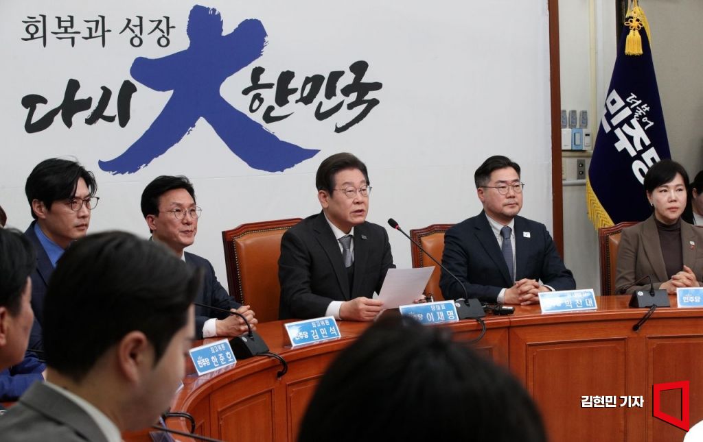 이재명 더불어민주당 대표가 4일 국회에서 헌법재판소의 윤석열 대통령 파면 선고 관련 입장을 밝히고 있다.