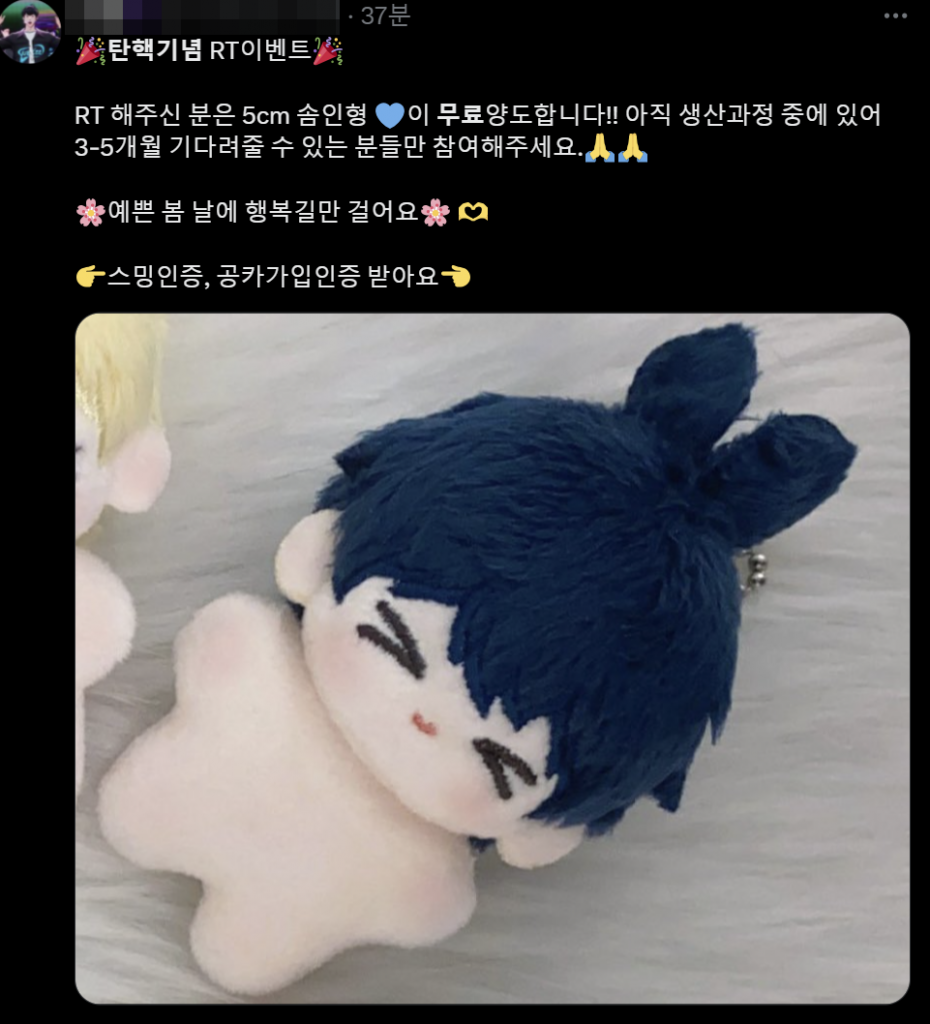 글 작성자들은 게시글을 리트윗(RT)하면 추첨을 통해 키링, 삽화, 카드 등을 준다고 밝혔다. '무료 나눔' 제품은 다양한데, 자신이 출판한 유료 소설이나 만화를 무료로 공개하거나 무료 사주를 봐주겠다고 나서는 이들도 있다.