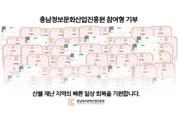 충남정보문화산업진흥원은 임직원들이 지난 1주일간 개별 모금을 통해 산불 피해 복구 성금을 기부했다고 4일 밝혔다.