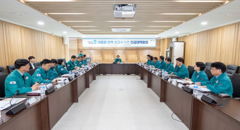 정헌율 익산시장이 대통령 탄핵이 결정된 4일 긴급 대책회의를 열고 '민생 안정'을 강조했다. 정 시장은 이날 헌법재판소의 대통령 탄핵 심판 선고 직후 긴급회의에 간부공무원을 소집하고 탄핵에 따른 대응 방안을 논의했다.