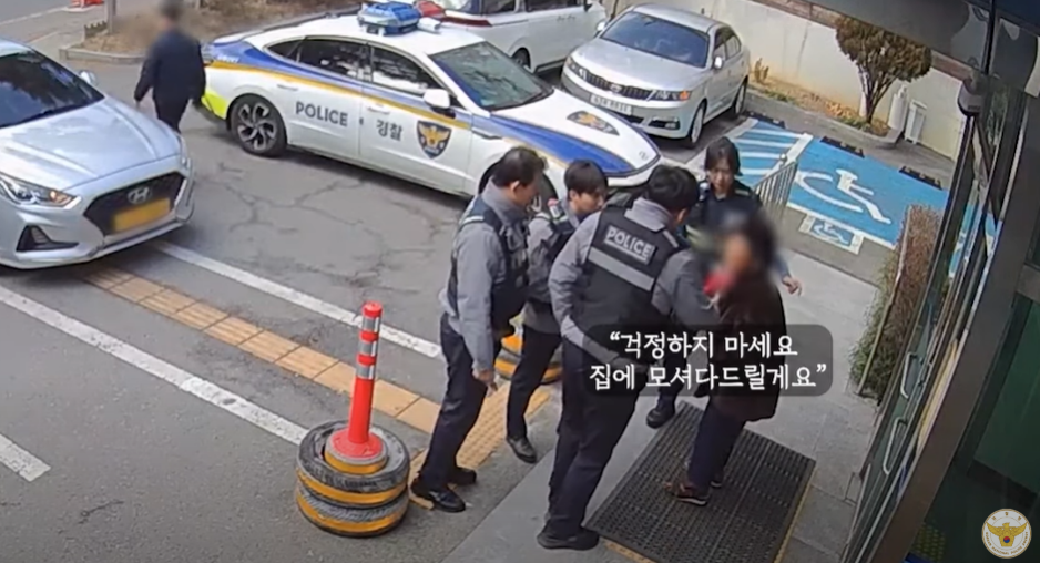 영상에는 지난달 18일 광주서부경찰서 화정지구대에 한 할머니가 택시에서 내리는 모습이 담겼다. 택시 기사가 "치매 어르신이 집을 못 찾으신다"라고 신고한 후 지구대로 이동해 도움을 요청한 것이다. 이어 할머니가 "집을 찾아 달라고" 눈물을 흘리자 경찰들은 "걱정하지 마시라"라며 지구대 안으로 안내했다.