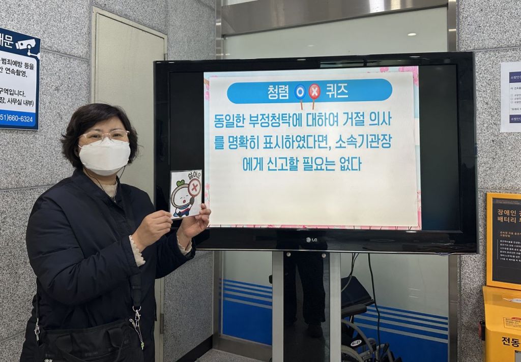 이날 행사는 청렴 관련 법령의 내용을 알리고 이를 통해 청렴문화를 조성하고자 '청렴 OX 퀴즈'를 실시했다.