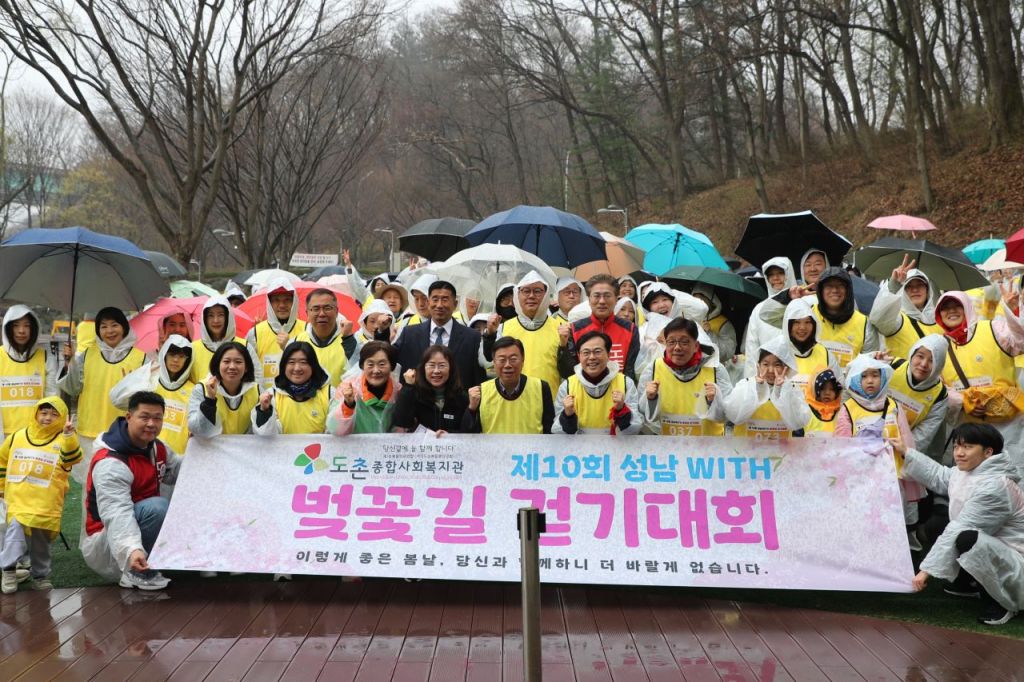 신상진 성남시장이 5일 중원구 도촌동 섬말공원에서 열린 ‘제10회 성남 WITH 걷기대회’에 참석해 시민들과 함께 봄비 속 특별한 걷기행사를 함께했다.