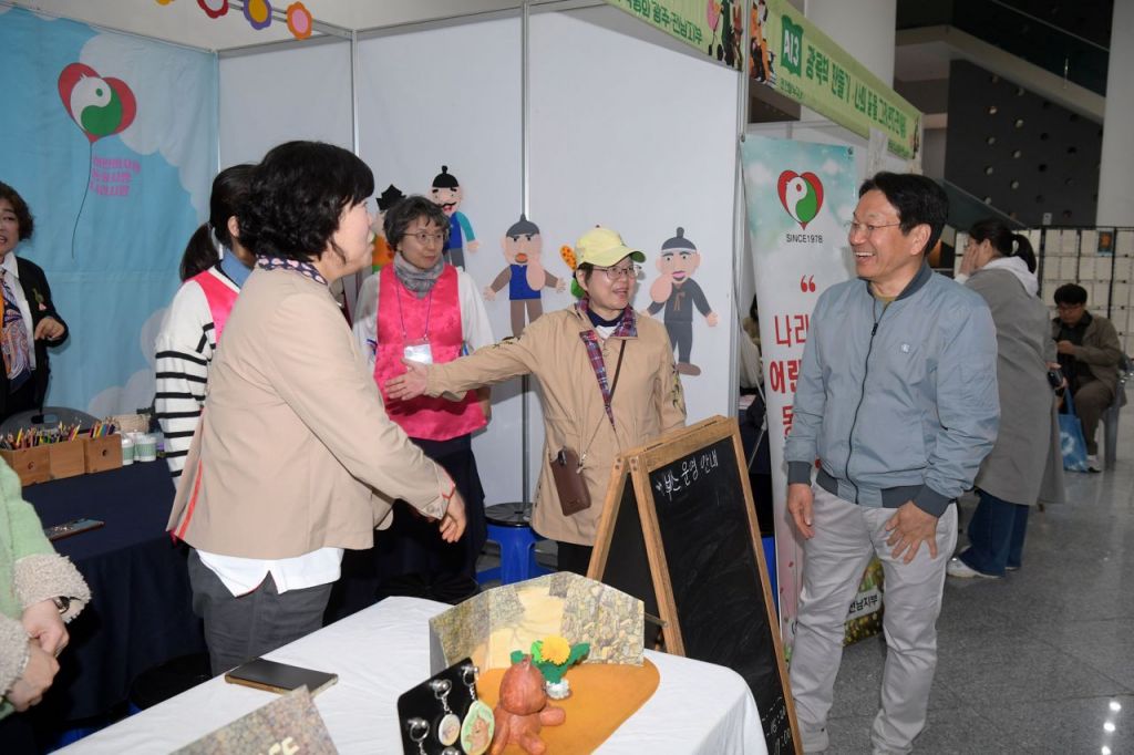 강기정 광주시장이 지난 5일 오후 시청 시민홀 및 야외광장에서 열린 제13회 도서관 문화마당에 참석하여 체험 부스를 순회하며 관계자들을 격려하고 있다. 광주시 제공